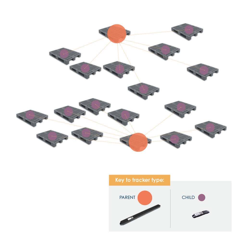 Sensize Parent and Child trackers work together to find the best route to transmit location and status data.